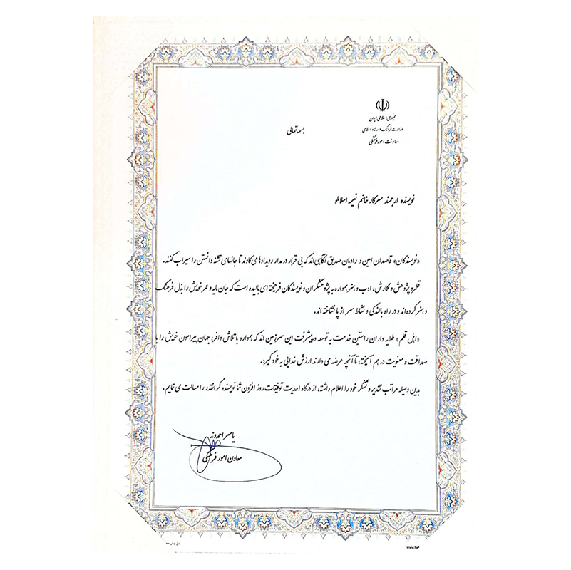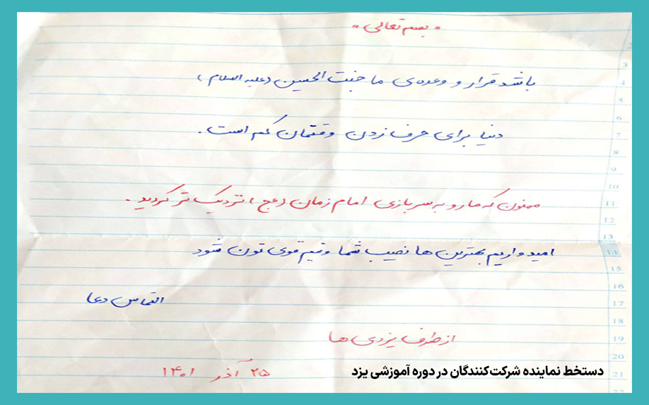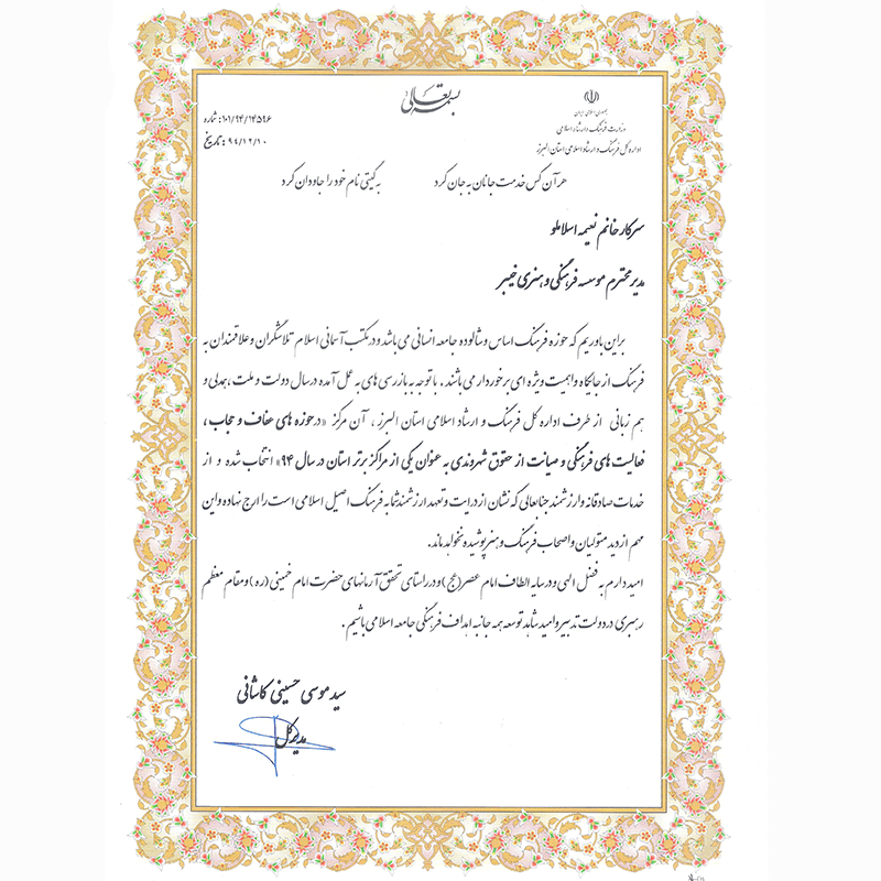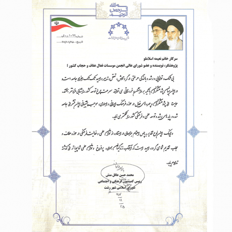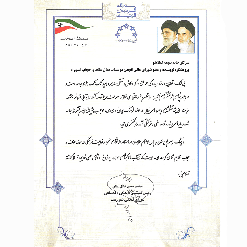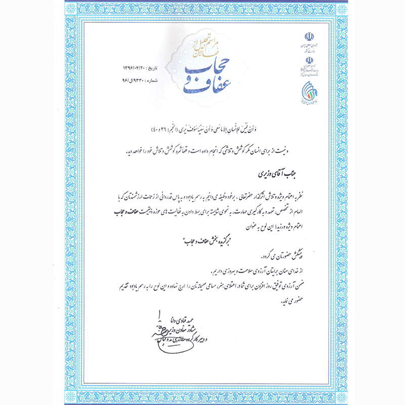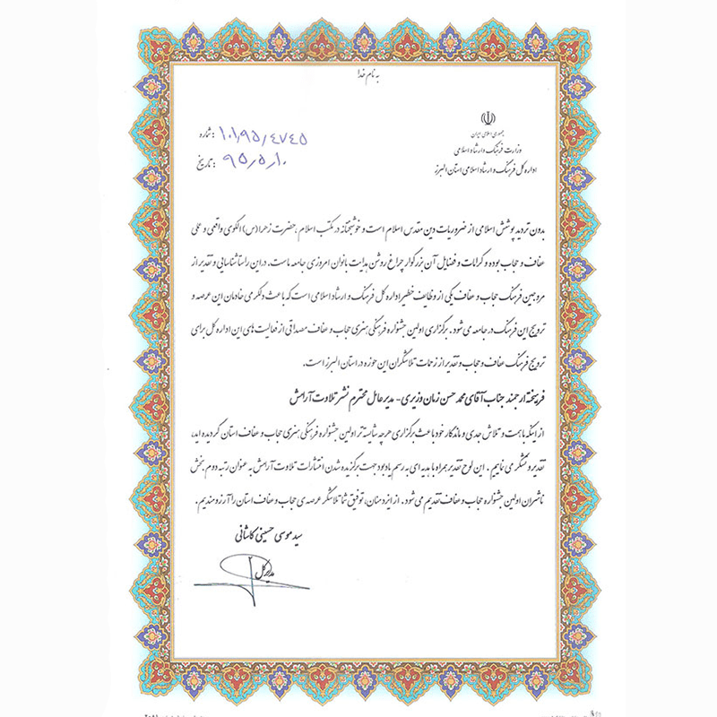 انگیزه سازی که از سوی جناب آقای وزیری در کارگاه اول صورت گرفت بسیار عالی بود مطرح کردن بحث ضرورت حجاب برای مسئولین شهر در ابتدای کارگاه هم بسیار عالی بود.