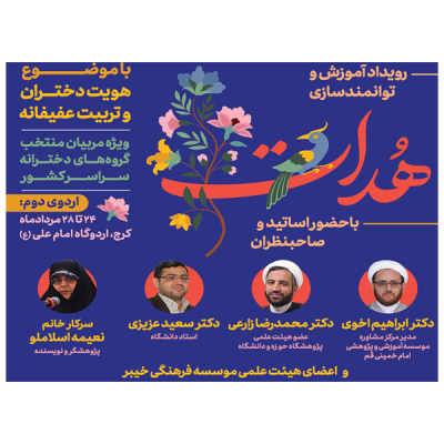 به گزارش روابط عمومی موسسه فرهنگی خیبر دومین اردوی آموزشی رویداد آموزش و توانمندسازی هدات با موضوع “هویت دختران و تربیت عفیفانه” در اردوگاه امام علی علیه السلام واقع در محمدشهر استان البرز در ۳ روز متوالی برگزار گردید.