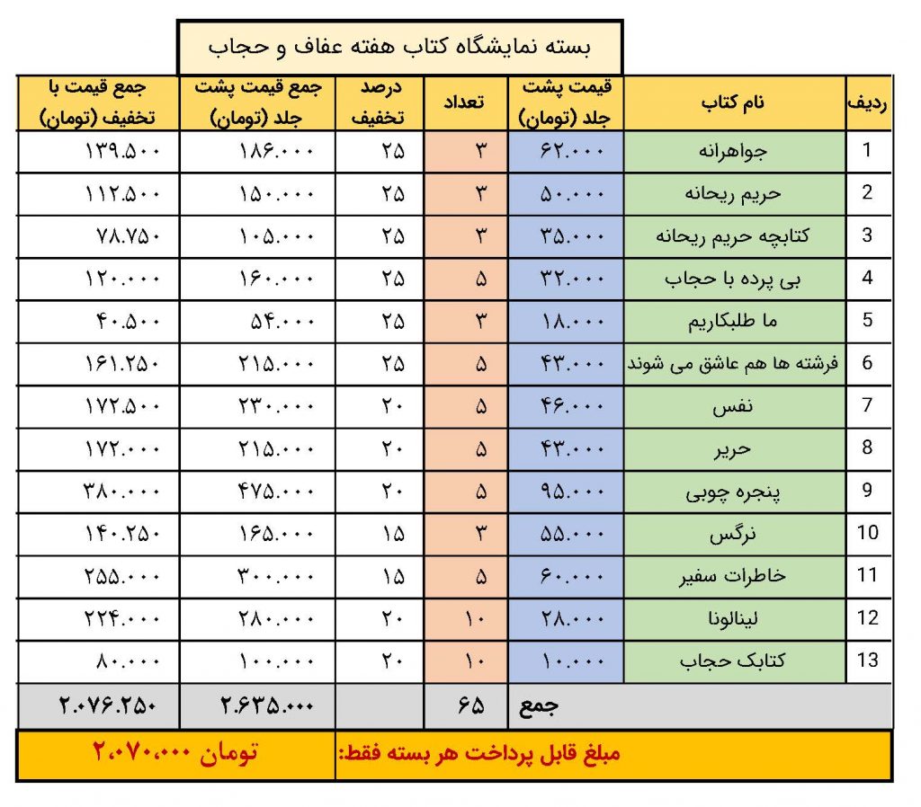 این بسته نمایشگاهی شامل کتاب های منتخب و مخاطب محور در حوزه حجاب و سبک زندگی عفیفانه میباشد.