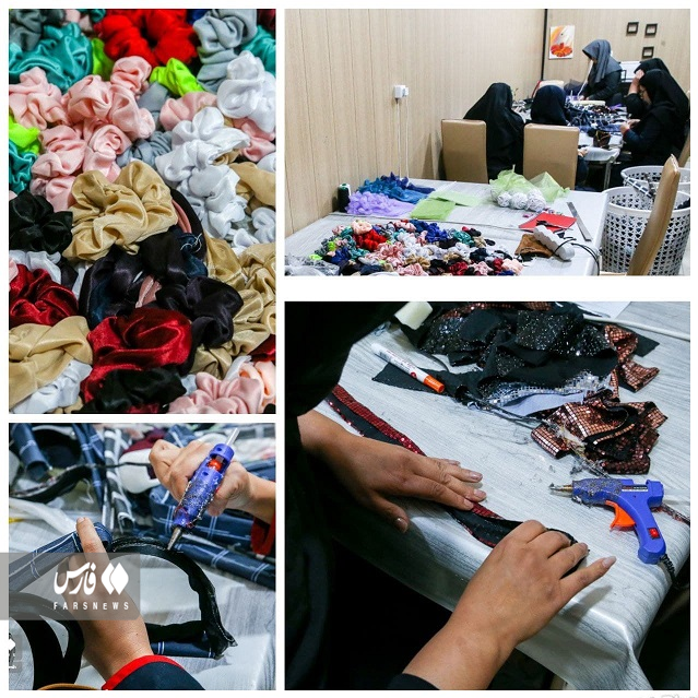 در کنار کارگاه خیاطی، یک اتاقک کوچک هم به بخش تولید کِش سر و تِل اختصاص داده شده. «سوگل» ۲۳، ۲۴ ساله درباره فعالیت این بخش میگوید: «خانمهایی که نتوانسته باشند مهارت خیاطی را یاد بگیرند، از کارگاه اصلی به اینجا میآیند. تولید کش سر و تل، کار سادهای است که ظرف یک روز میتوانند یاد بگیرند. میدانید، در کارگاههای دیگر، نمونه کار را جلوی دست نیروها میگذارند و میگویند باید همین را تولید کنید. اما حسن کار کردن با خانم صابری این است که دست ما را باز میگذارند و خودمان میتوانیم برای تنوع کار، ایده بدهیم و محصولات جدید تولید کنیم. از طرف دیگر با توجه به اینکه کار و مزدش متعلق به خودمان است، انگیزه بچهها برای تولید بیشتر میشود. بچهها هر روز میتوانند ۱۰۰ تا کش درست کنند، مزد هر کش را هم که ۵۰۰ تا هزار تومان در نظر بگیریم، درآمد مناسبی دستشان را میگیرد که میتوانند رویش حساب کنند. اینجا تنها کارگاهی است که به امثال ما، فرصت کارآفرینی میدهد. بابت همه این حمایتها از خانم صابری ممنونیم.»