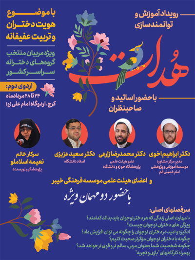 به گزارش روابط عمومی موسسه فرهنگی خیبر دومین اردوی آموزشی رویداد آموزش و توانمندسازی هدات با موضوع “هویت دختران و تربیت عفیفانه” در اردوگاه امام علی علیه السلام واقع در محمدشهر استان البرز در ۳ روز متوالی برگزار گردید.