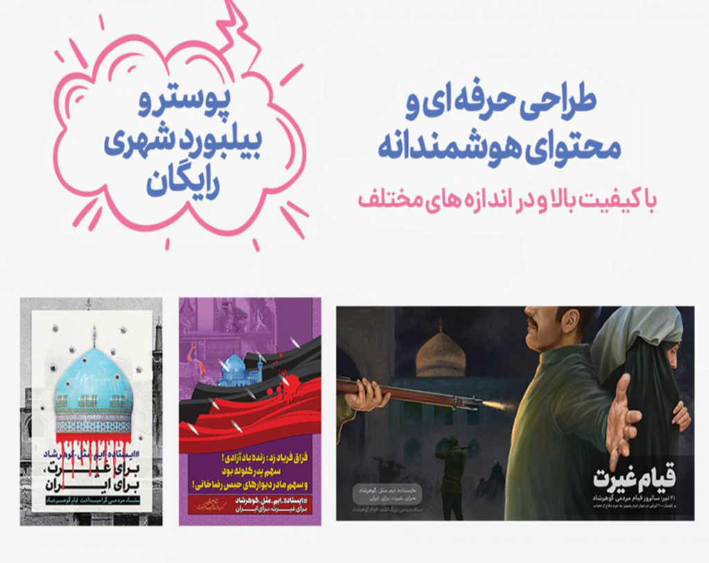 “برای دریافت فایل پوسترهای گوهرشاد، اینجا را بزنید.”