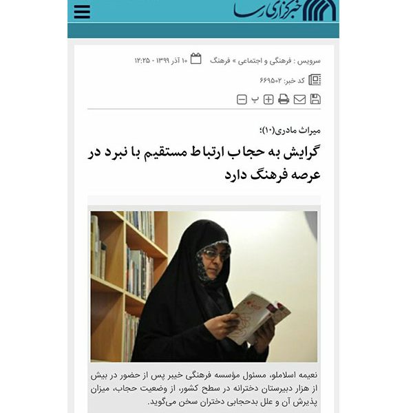 خانم اسلاملو در مصاحبه با سایت رهبر معظم انقلاب: متولیان ترویج حجاب تحلیل واحدی ندارند